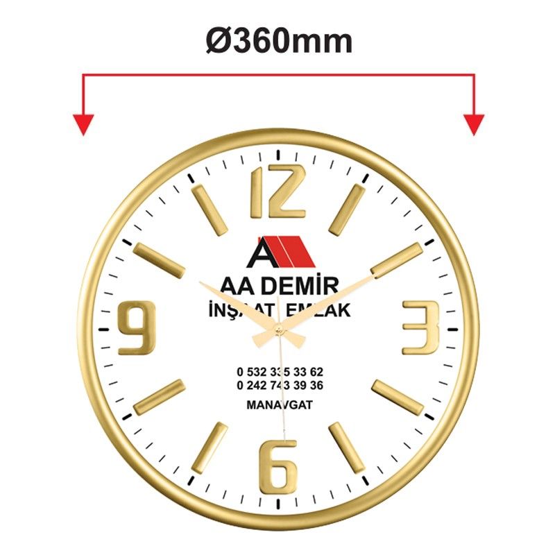 Krom Kaplı Metal Çerçeve Mineral Bombeli Cam Sessiz Akar Makine Ofset Kabartma Rakamlı Kadran Kadran Ölçüsü : 341mm