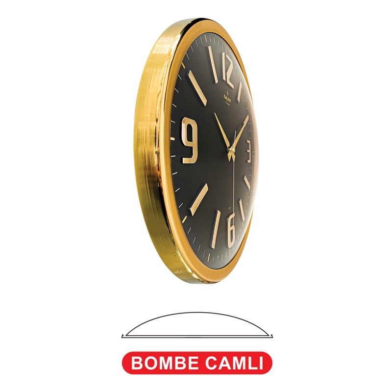 Krom Kaplı Metal Çerçeve Mineral Bombeli Cam Sessiz Akar Makine Ofset Kabartma Rakamlı Kadran Kadran Ölçüsü : 341mm